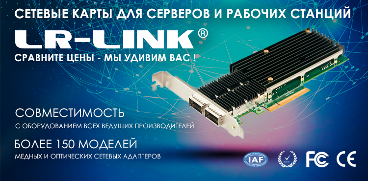 Оптические и медные сетевые карты LR-LINK. Более 150-ти моделей сетевых адаптеров для серверов и рабочих станций. Сетевые карты с интерфейсами SFP+, QSFP, SC, ST, LC, RJ45. Уникальные Bypass, PoE, Uni-directional, USB сетевые адаптеры.